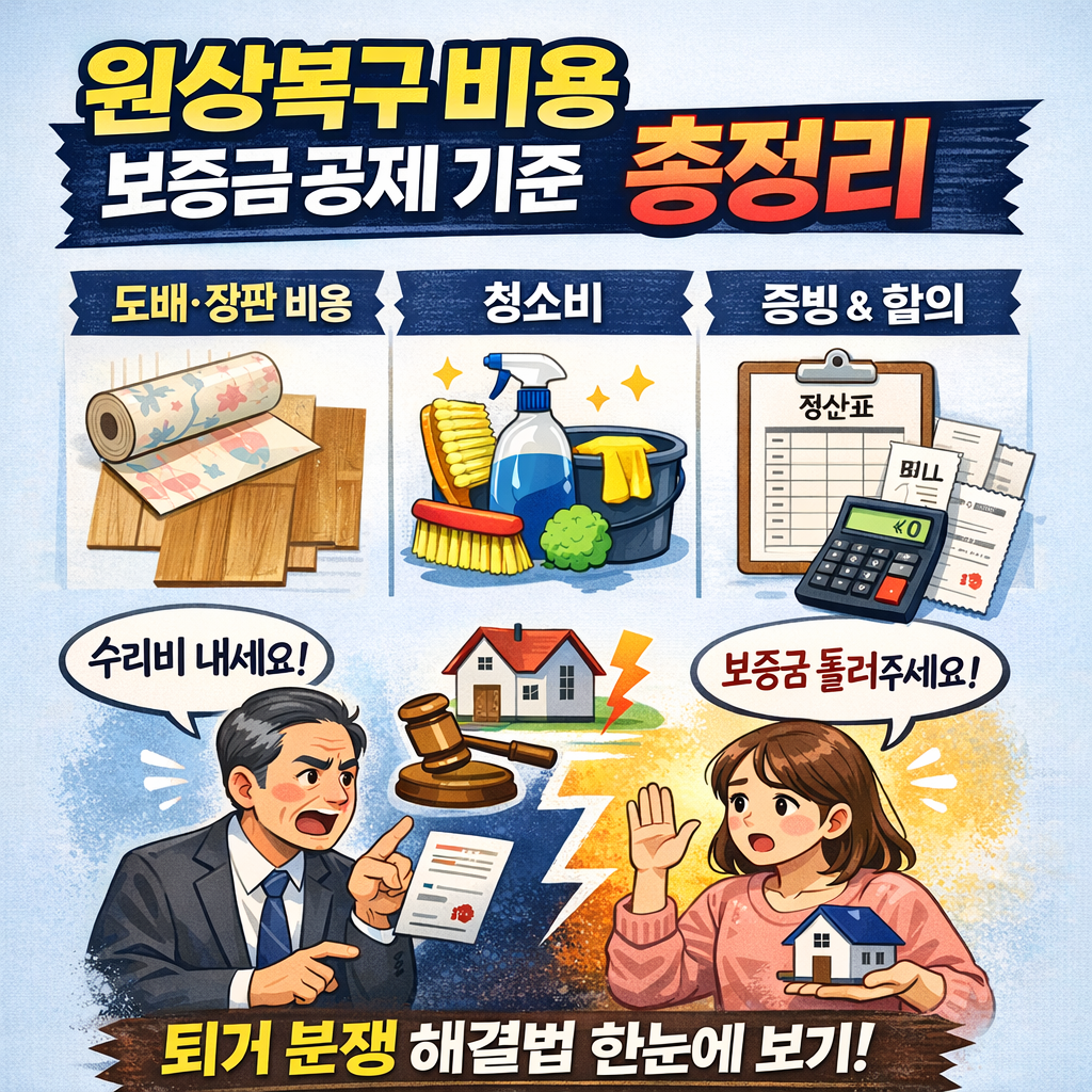 전세·보증금 퇴거 정산← 전세 임대차 관련 정보 확인하기📌 상단 이동 목차 TOP ↑1) 지금 분쟁이 생기는 이유(한 줄 요약) 2) 핵심 판정 기준: 노후 vs 과실 3) 공제 주장 나오면 바로 확인할 것(증빙) 4) 해결 프로세스: 원인→확인→해결 5) 자주 터지는 실수 5개(돈 새는 포인트) 6) 상황별 정산 기준표(요약) 7) FAQ(검색어 형태) 8) 30초 요약 + 다음 읽을 글 하이라이트 요약(먼저 이것만 잡고 가요)핵심 1“노후”는 원칙적으로 임대인 몫벽지가 누렇게 변한 것, 장판이 자연스럽게 닳은 건 ‘살다 보면 생기는 변화’인 경우가 많아요. 여기서 많이 헷갈리죠?핵심 2“과실”이면 항목·범위·사진이 필요구멍, 찢김, 심한 얼룩처럼 사건이 떠오르는 손상은 얘기가 달라져요. 다만 “전체..